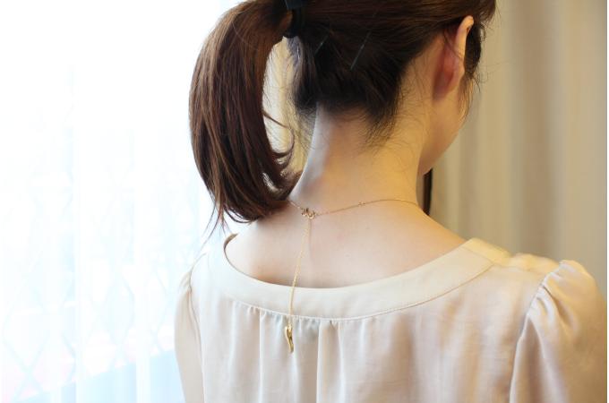 「気がつくとネックレスの留め具が前に回ってしまう」そんなお客様のお困りのお声から生まれました。