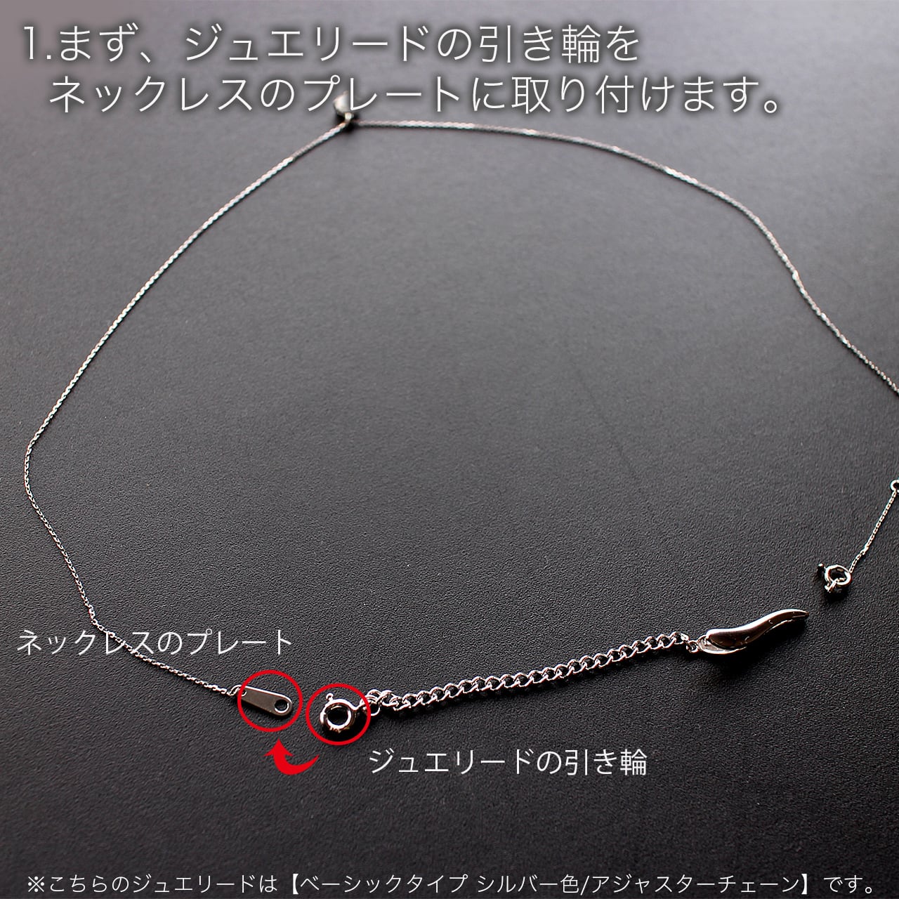 1. ジュエリードの引き輪を、お手持ちネックレスのプレートに留める