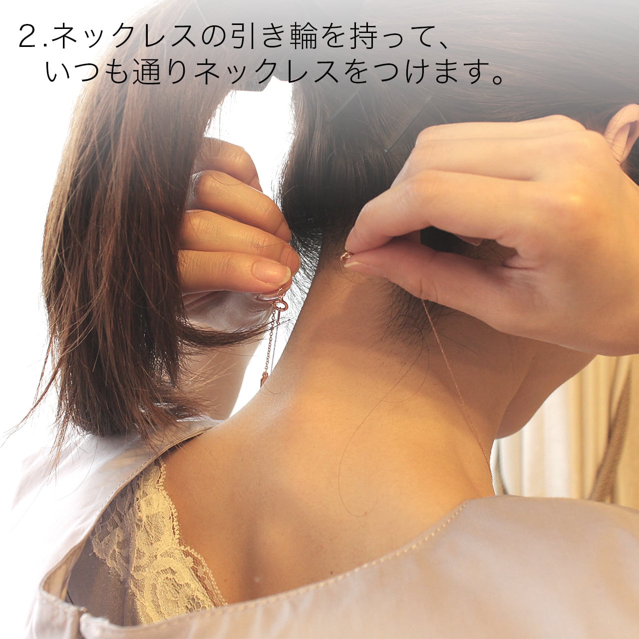 2. ネックレスの引き輪を、ジュエリードの引き輪に留める